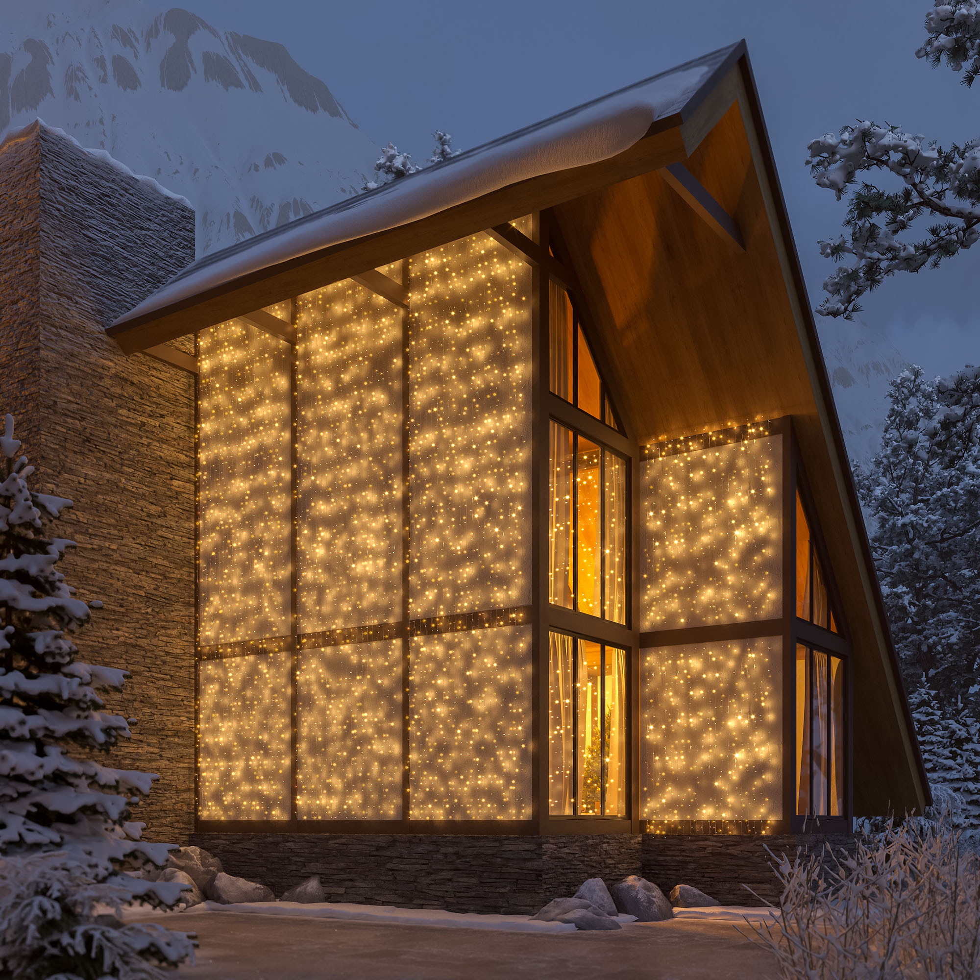 Гирлянда-занавес, состоящая из нитей равной длины, привнесет атмосферу волшебства и уюта даже в самую будничную обстановку.