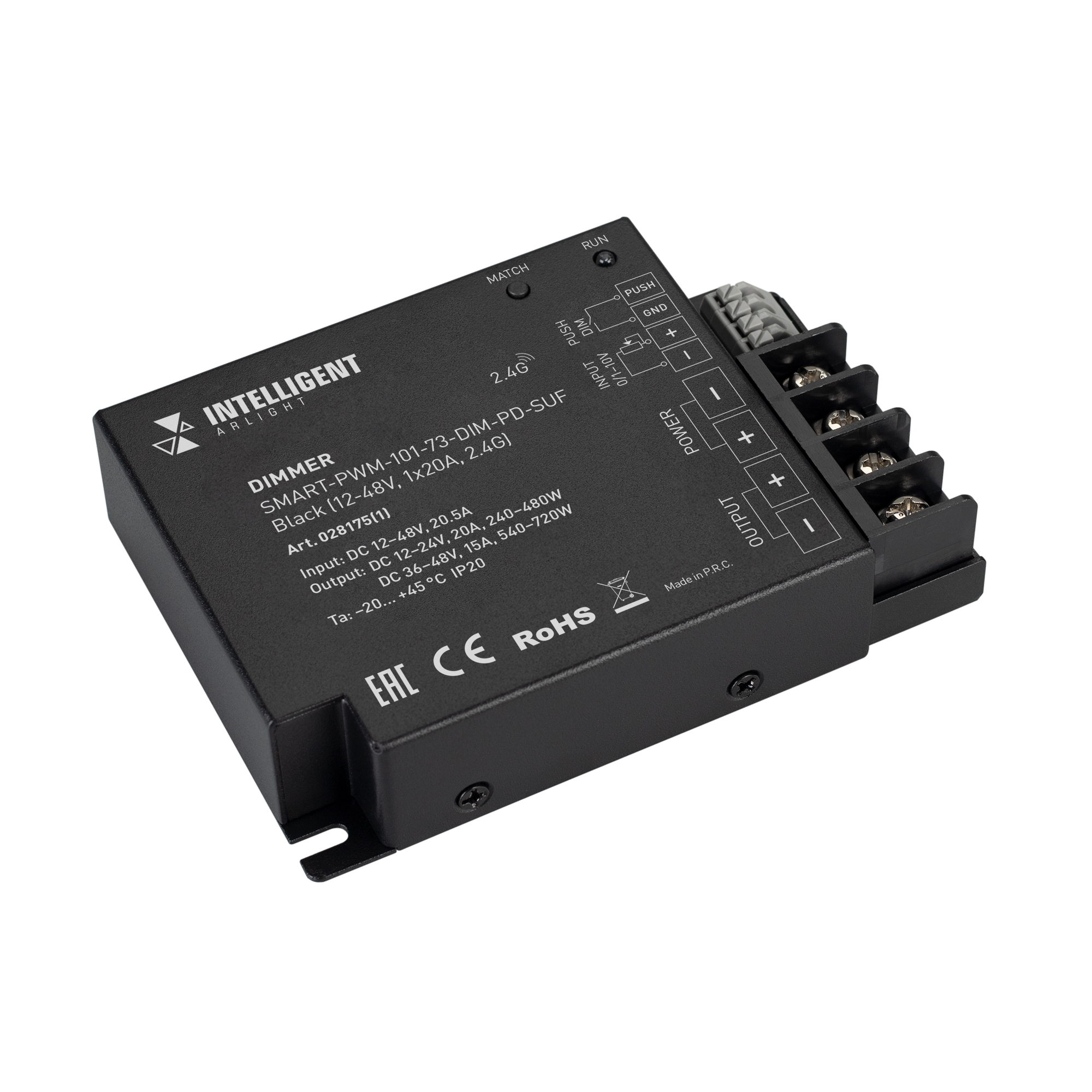 INTELLIGENT ARLIGHT Диммер SMART-PWM-101-73-DIM-PD-SUF Black (12-48V, 1x20A, 2.4G) (IARL, IP20 Металл, 5 лет)