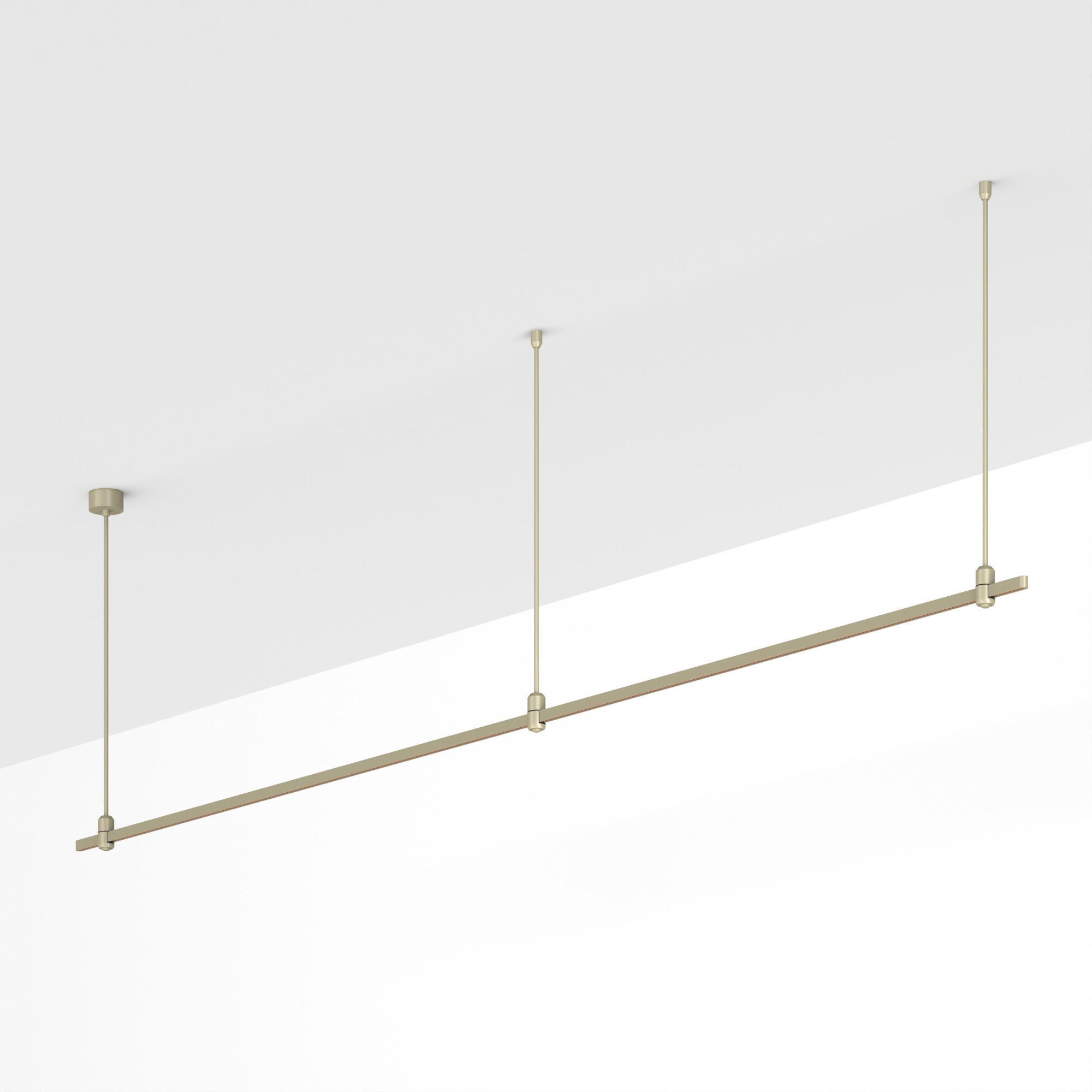 Подвесная линейная конструкция APRIORI. В комплекте трек с аксессуарами и жесткими подвесами длиной 800мм. DC48V. Материал алюминий, цвет серо-оливковый. Размер ДxШxВ: 3000x17x22мм. Размер (с учетом заглушек) ДxШxВ: 3021x17x22мм. Для установки необходима фиксация на потолочной поверхности с использованием трех опорных точек подвеса. Светильники и источники питания приобретаются отдельно.