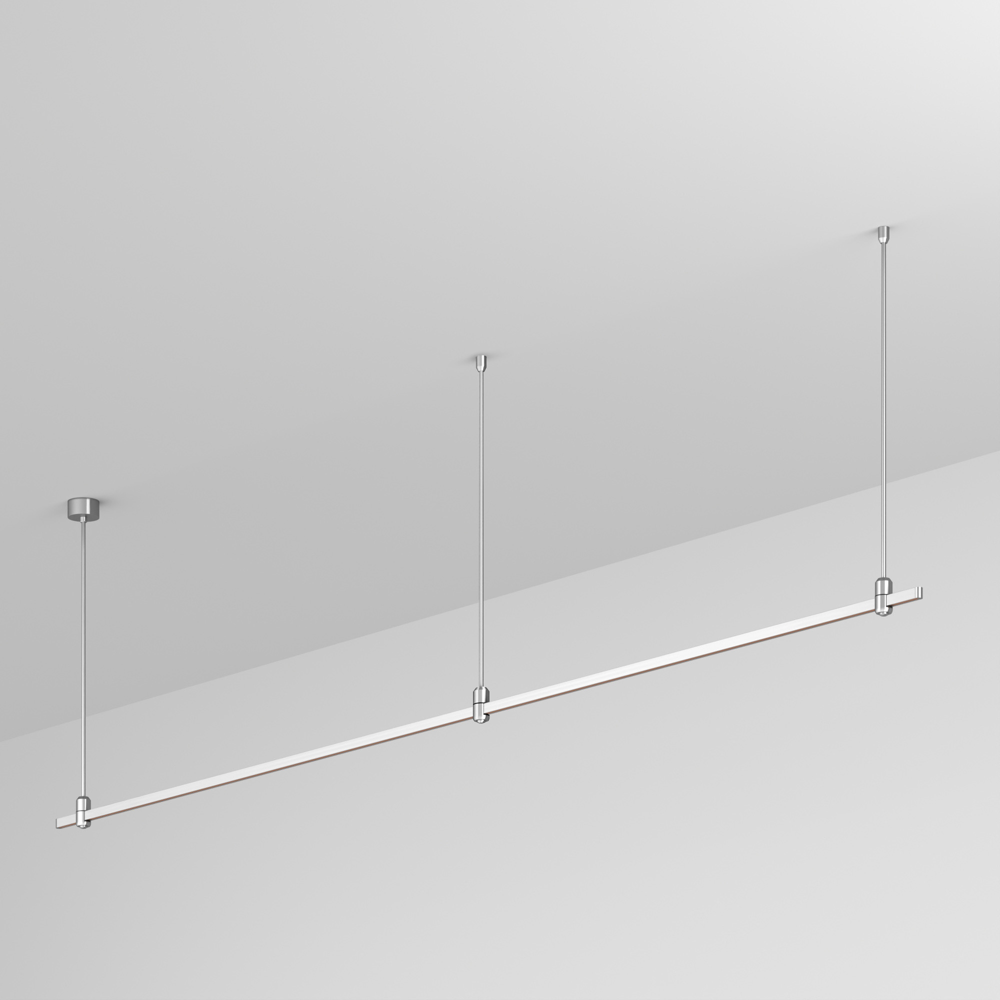 Подвесная линейная конструкция APRIORI. В комплекте трек с аксессуарами и жесткими подвесами длиной 800мм. Размер ДxШxВ: 3000x17x22мм. Размер (с учетом заглушек) ДxШxВ: 3021x17x22мм. Монтируется подвесным способом. Для установки необходима фиксация на потолочной поверхности с использованием трех опорных точек подвеса. Шинопровод рассчитан на работу с безопасным напряжением DC48В. Изготавливается из алюминия, анодированного в цвет титан. Светильники и источники питания приобретаются отдельно.