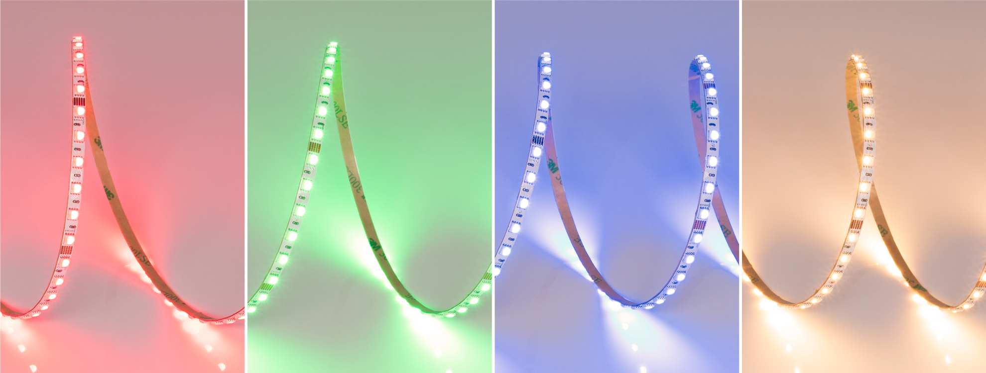 В серии представлены модели с 3 оттенками белого цвета свечения: 3000 K, 4000 K или 6000 K + RGB. Создавайте яркий нейтральный или красочный свет одним нажатием кнопки RGBW-контроллера.
