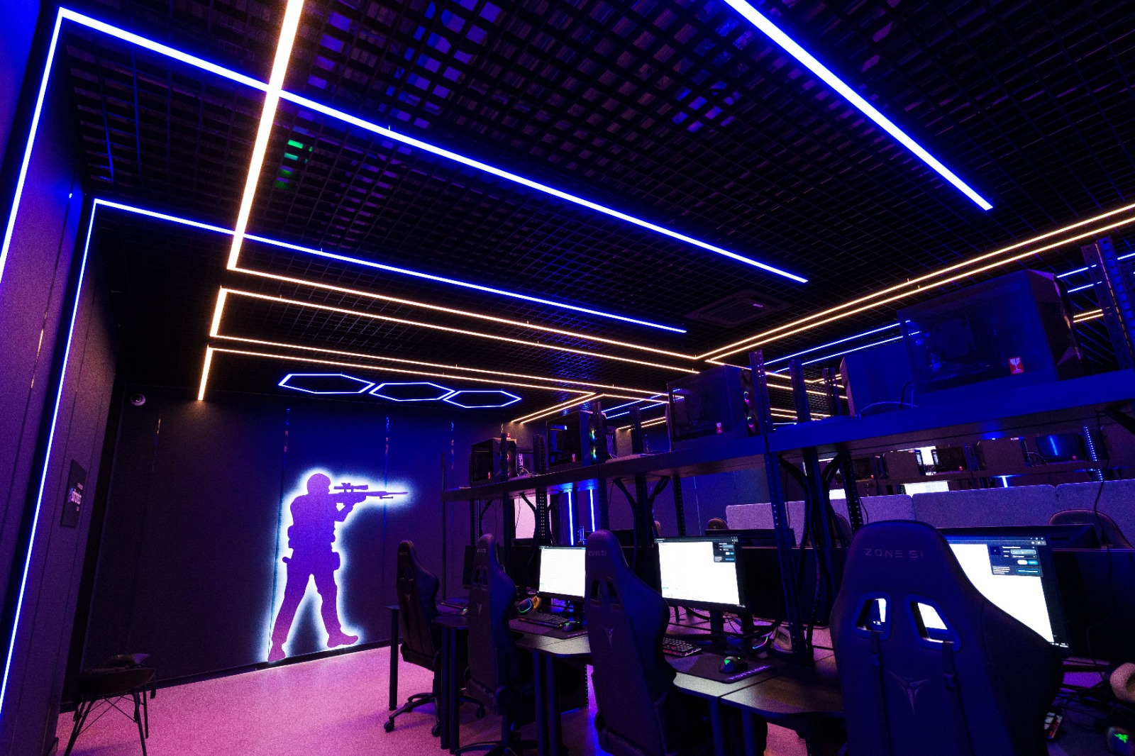Геометрические фигуры из линейных профильных светильников со светодиодной лентой серий RTW и MOONLIGHT отлично вписываются в пространство центра. Минималистичные во внешнем исполнении, они создают основное освещение.