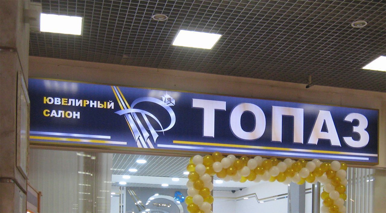 Освещение и подсветка данного ювелирного салона были выполнены полностью на основе оборудования Arlight. Начнём со входа, а точнее - с вывески. Это традиционный световой короб (лайтбокс), в подсветке которого использованы светодиодные модули Arlight ARL-LM5050-3L-12V White.
